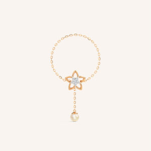 Double Crystal Pearl Ring Gold Plated Open Earring